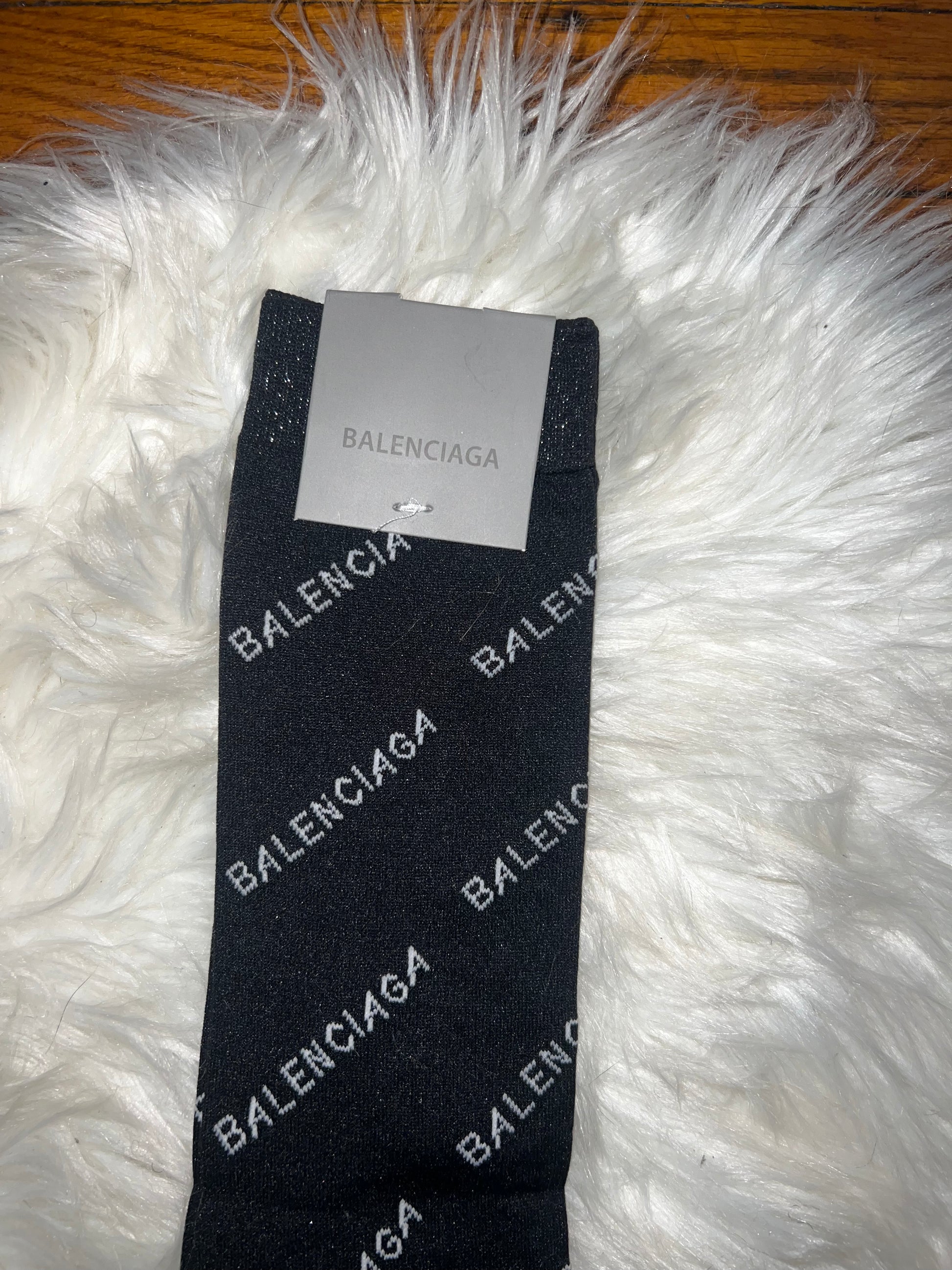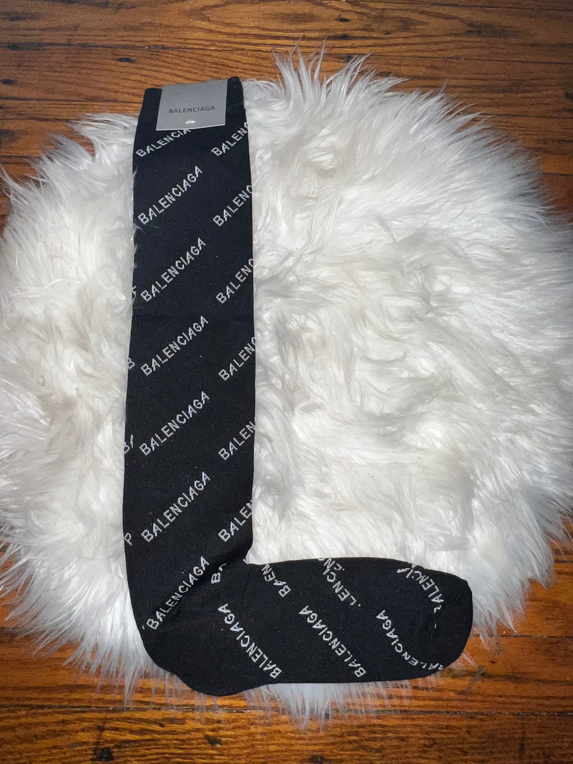 Balenciaga knee high socks. These socks are one size fit all. They are long enough to cover the knees.