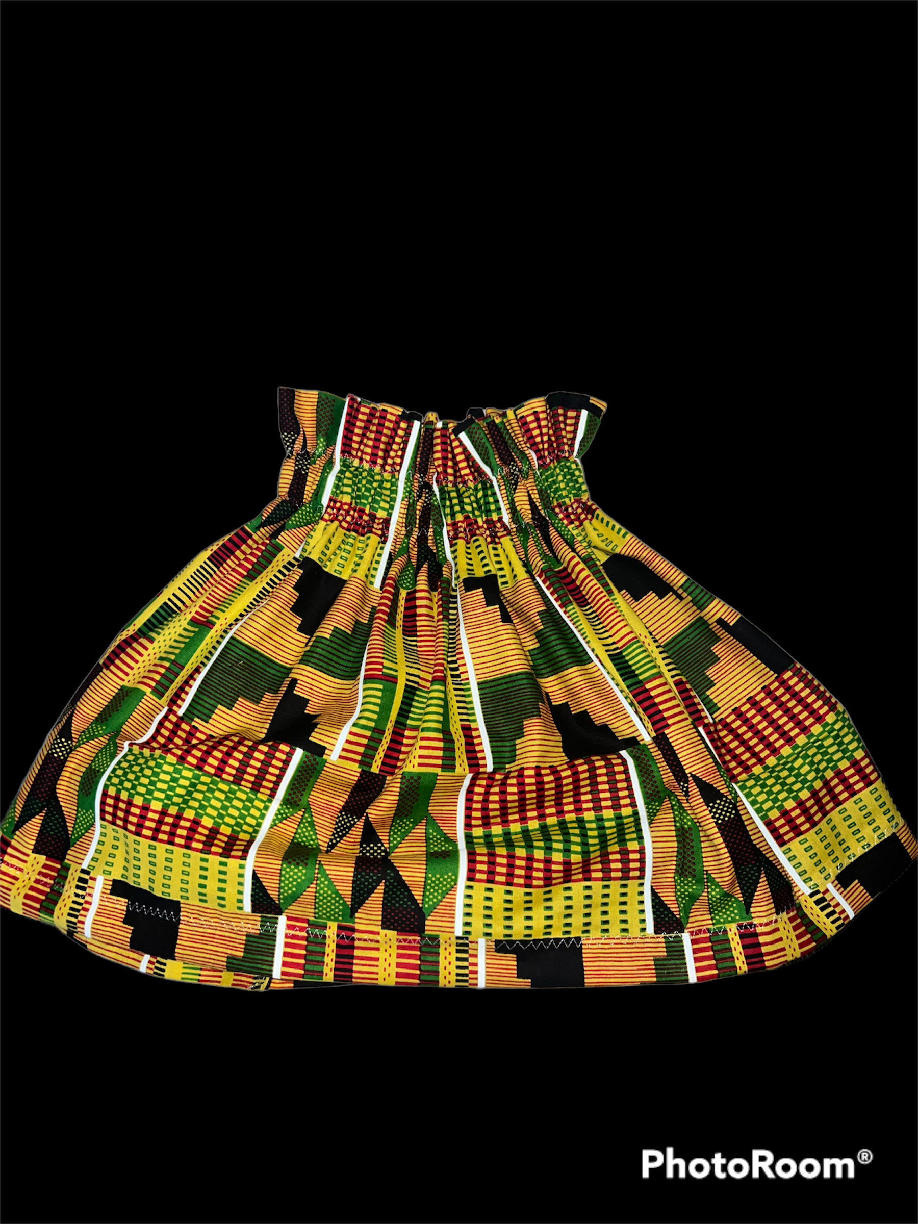 African Kente print skirt with paper bag waist.